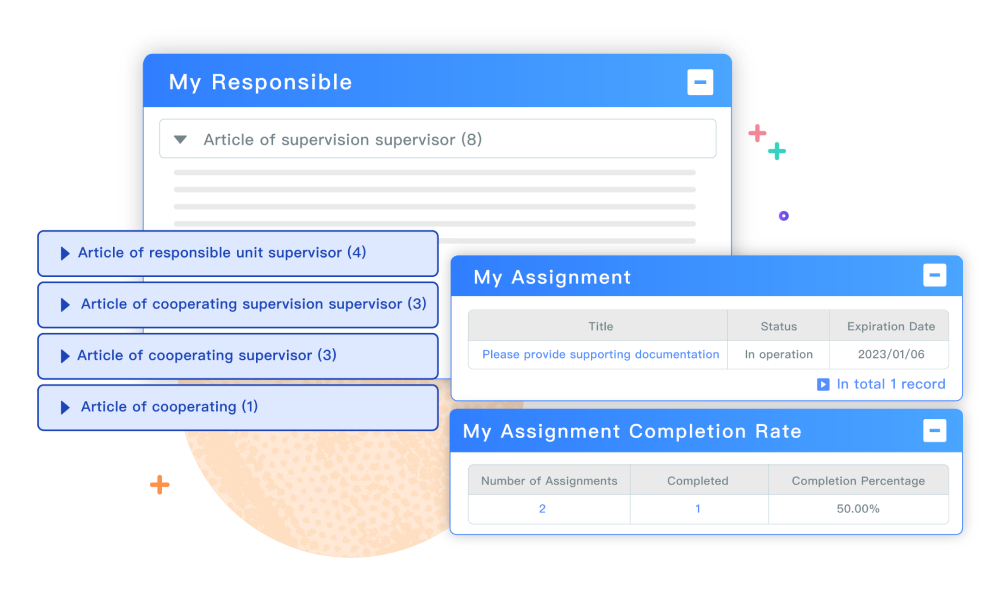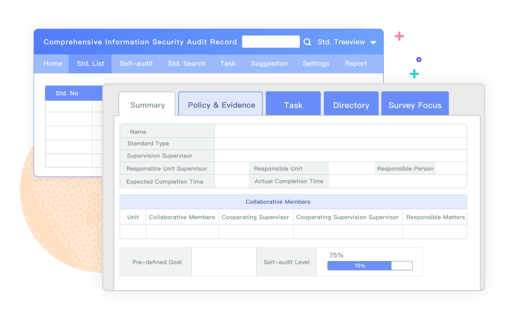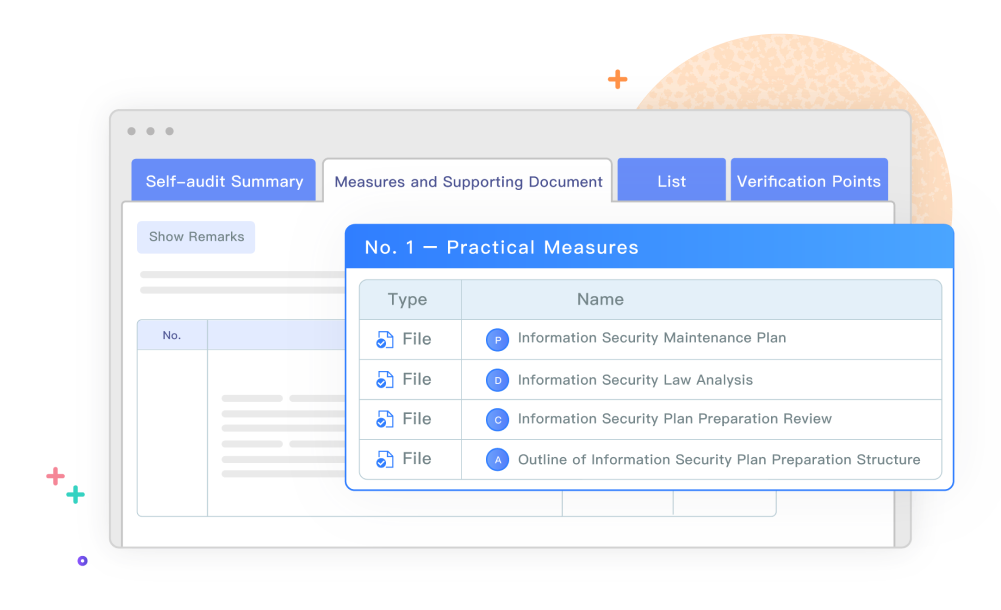 - Using the directory summary function to present all verification clauses, measures, documents, and self-assessment records online.