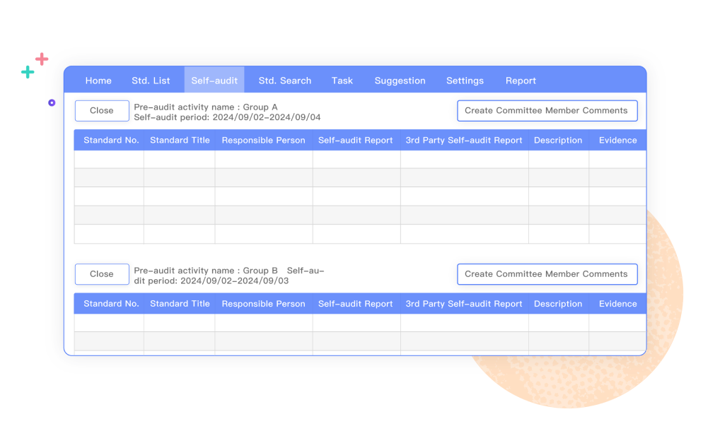 - Conducts online self-assessments for internal audits, scoring and viewing results for all audit clauses and reports.