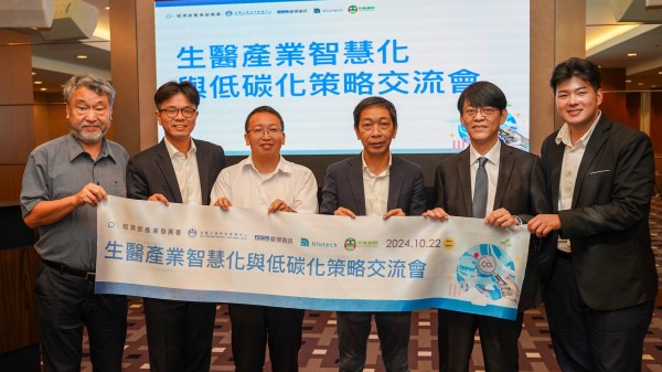 金屬工業研究發展中心攜手叡揚資訊股份有限公司、科建管理顧問股份有限公司、博世科智能股份有限公司舉辦「生醫產業智慧化與低碳化策略交流會」,分享淨零轉型的數位化與低碳化解方。左起為叡揚資訊雲端產品總監田欣、雲端夥伴與客戶業務處處長賴俊仁、科建管理顧問經理胡傳修、博世科智能策略長陳文峰、叡揚資訊創新推動處處長李漢超、業務經理楊忠叡。