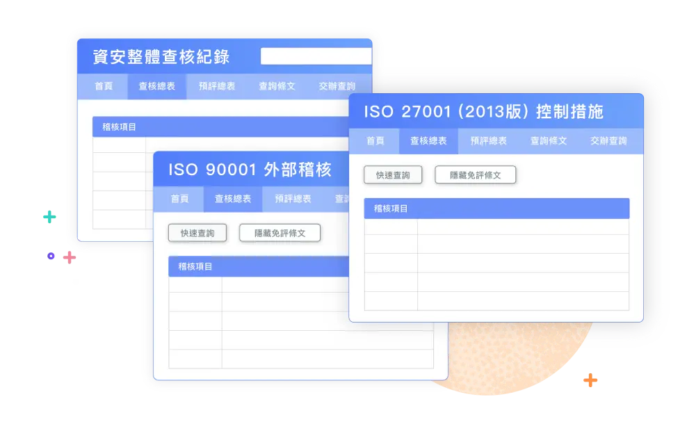 - 因應稽核需求,規劃條文群組與查證路徑,事先準備與查核備查驗證成果的完備性