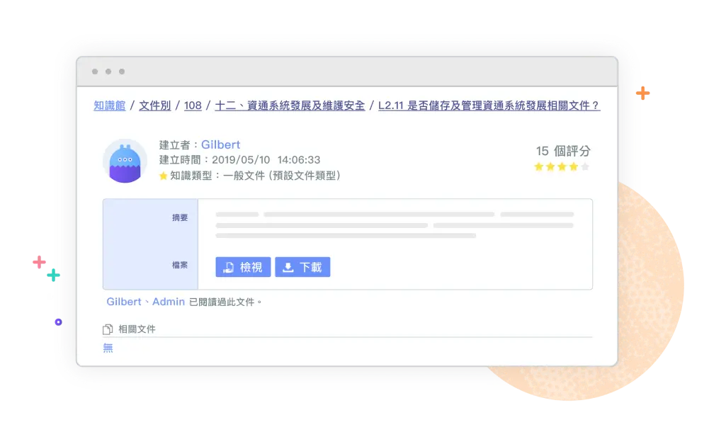 - 底層 Knowledge 站台,支援各類型文件檔案保存、文件 ID 連結、與文件檔案多維度查詢 (目錄、分類夾、標籤)