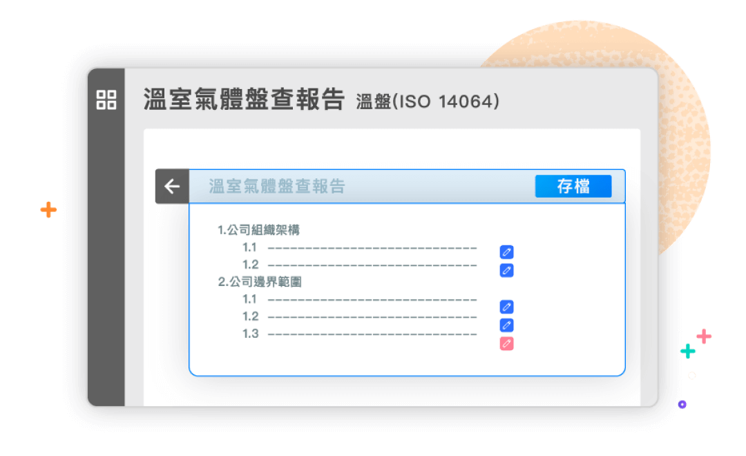 - 支持國際標準 ISO 14064-1 組織層級溫室氣體排放量化及報告