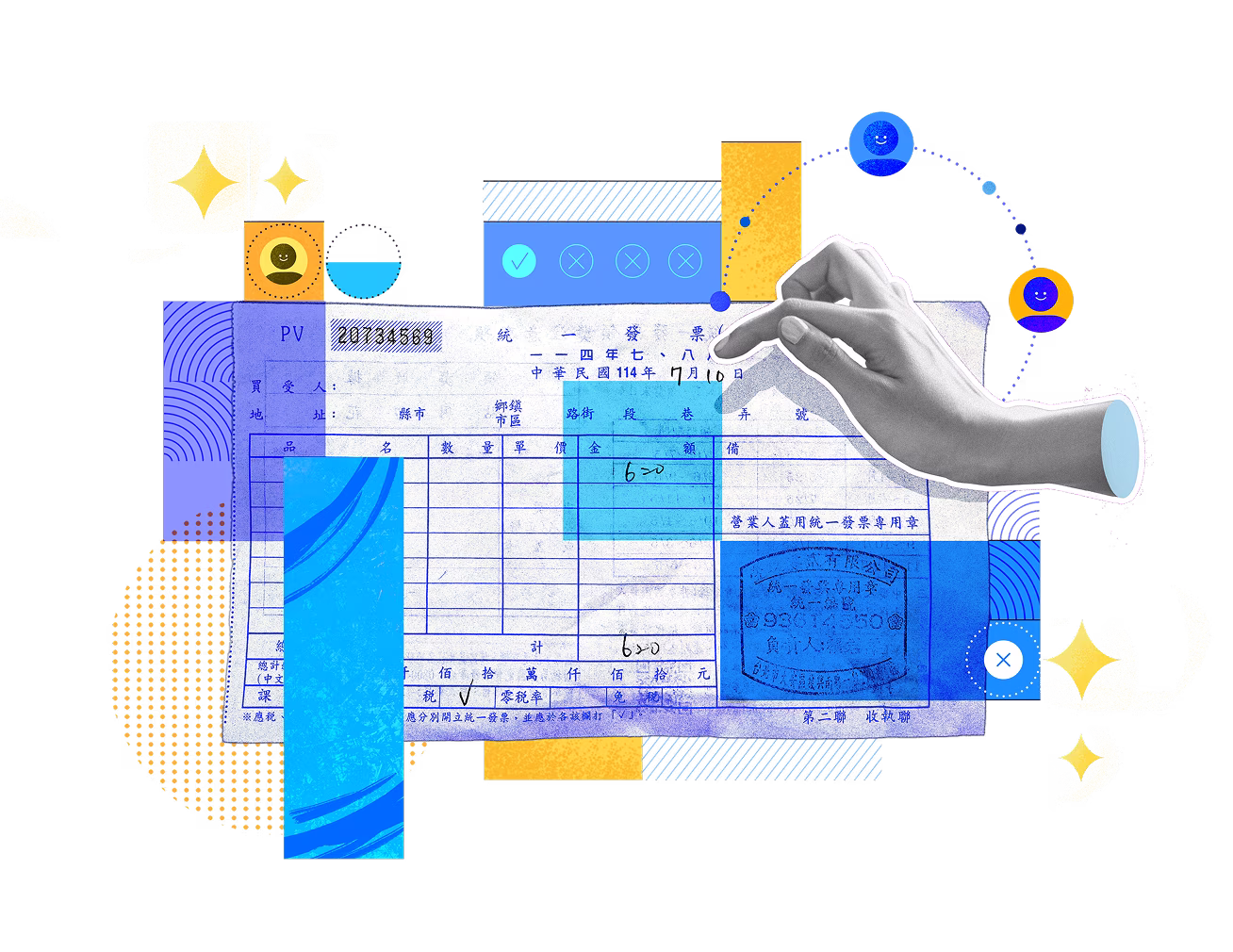 自動辨識發票資訊,如發票號碼、日期、金額、賣方資訊等,並提供可視化畫面進行快速核對與人工補正,保障資料準確無誤。